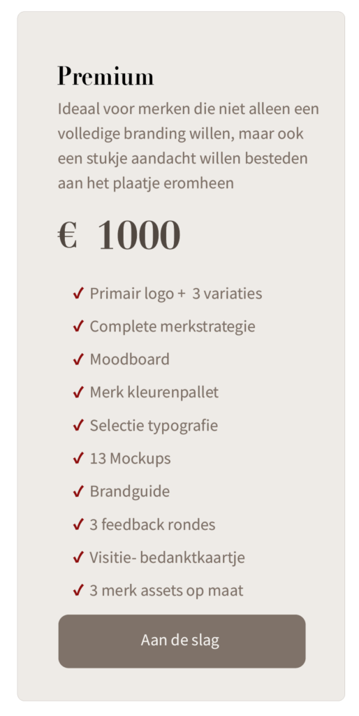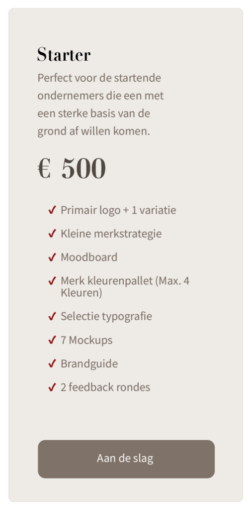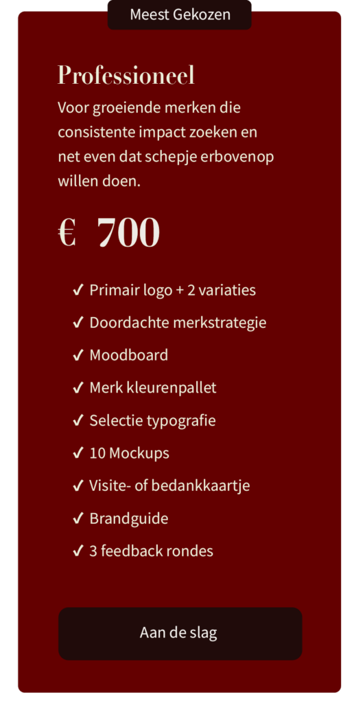 Een logo is slechts het begin. Echte branding draait om de totale beleving van jouw merk. Het gaat om uitstraling, herkenbaarheid en het gevoel dat je achterlaat bij je doelgroep. Van kleurgebruik en typografie tot tone of voice en positionering; alles moet kloppen en elkaar versterken.